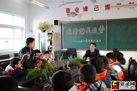 近日,浙江省慈溪市检察院干警前往该市某民工子弟学校开展“法律助我追梦”主题普法活动,通过生动的形式释法答疑,进一步提升了学生的法律意识。记者 屠春技 通讯员 李仲豪摄