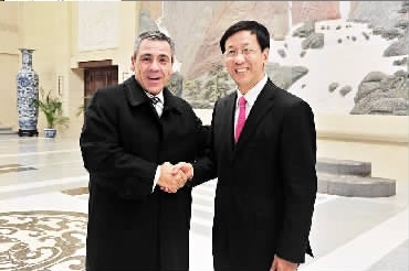 12月15日,最高人民检察院检察长曹建明在京会见西班牙加泰罗尼亚反欺诈局局长阿方索一行。正义网记者程丁摄