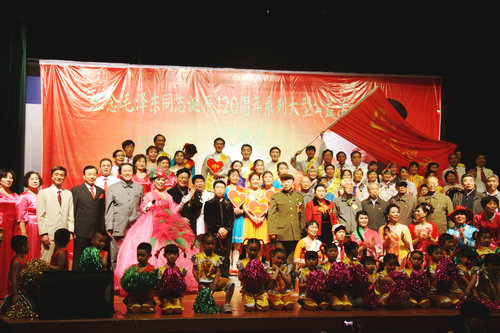 广东省洪安集团毛虹婷董事长、毛泽东的女婿王景清、毛泽东身边工作人员和演员合影