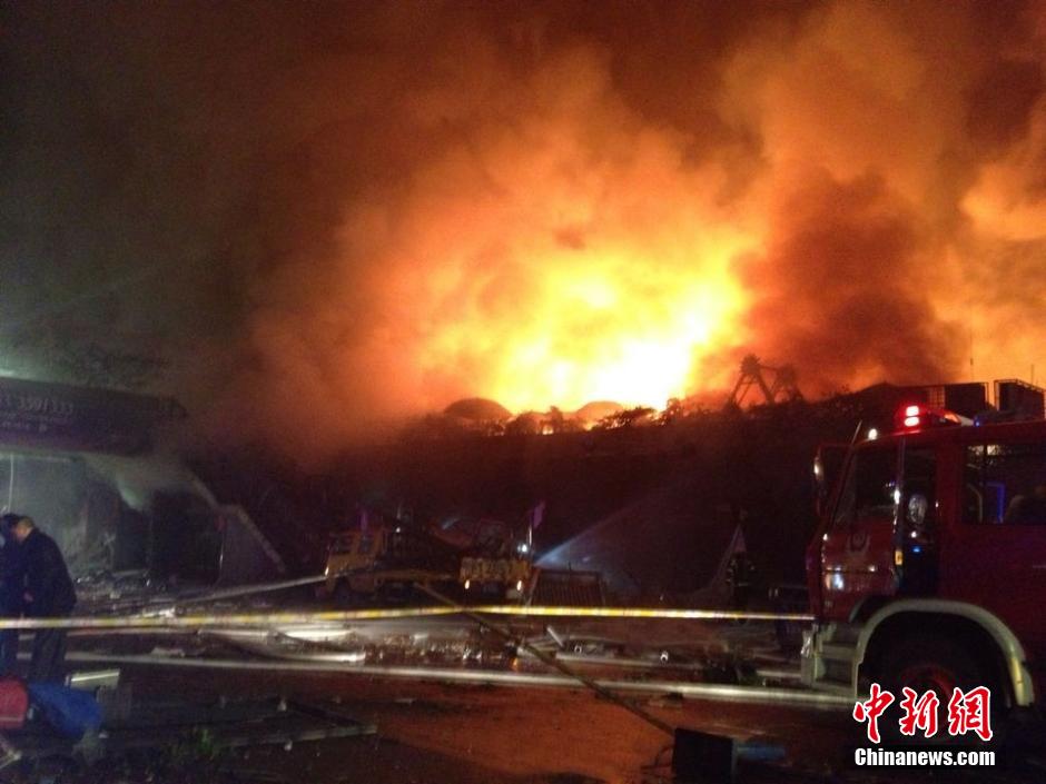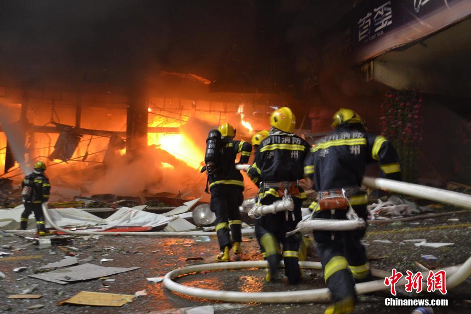 12月26日晚10时40分许,四川泸州城区江阳路一商场爆炸,商场负一楼和一楼起火燃烧,行驶在公路上的多辆汽车受波及,近200米的街道一片狼藉,多人受伤送医。当地相关部门已在现场展开救援。周亚强 摄