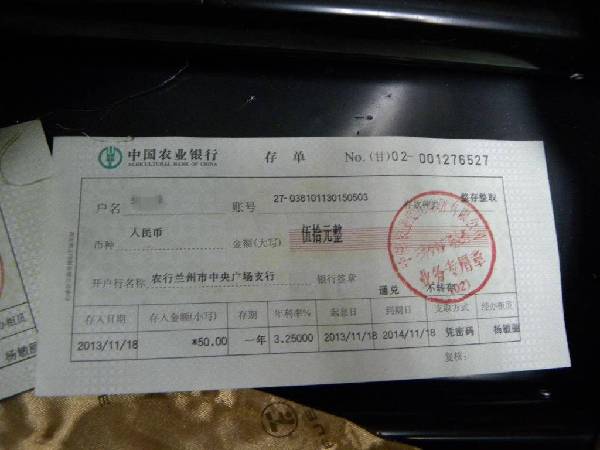 图一:50元的真银行存单