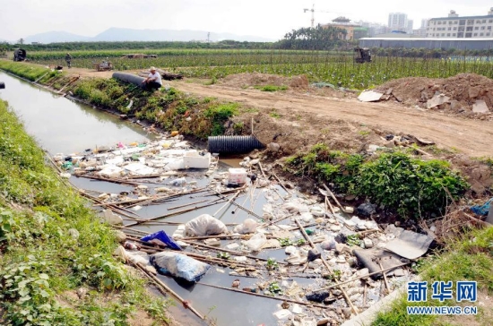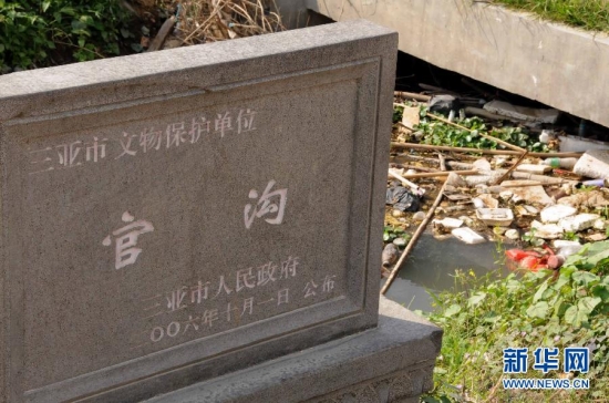 位于三亚市的“官沟”是始修于明代的水利沟渠,由于其对研究海南岛水利史具有重大价值,早在2006年即被认定为三亚市文物保护单位。可如今,官沟已被生活垃圾覆盖,沟渠中不时传来恶臭,岸上两座文物保护单位标志碑犹如“漂”在一片垃圾上。新华社记者 魏骅 摄