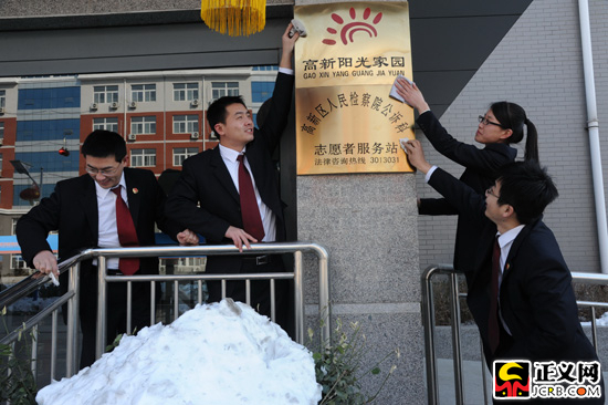 山东省潍坊高新技术产业开发区检察院去年联合该区社会事务管理局、司法局创办集涉罪未成年人帮教、考察和社区矫正于一体的综合帮教基地——“阳光家园”,为纳入帮教的涉罪未成年人量身定制帮教方案,并选拔业务熟练、善于表达、沟通能力强的年轻检察官任帮教指导员,跟踪考察帮教对象的矫正、悔罪、改造情况,最大限度地挽救涉罪未成年人。图为春节刚过,该院检察官们将“阳光家园”牌子擦得干干净净。正义网通讯员王淑华 记者卢金增摄