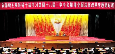 2月20日,中共中央政治局委员、中央政法委书记孟建柱在省部级主要领导干部学习贯彻十八届三中全会精神全面深化改革专题研讨班上作报告。居杨摄