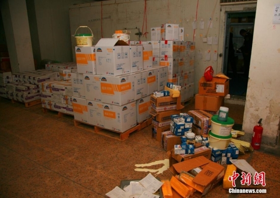 3月15日下午18时,按照国家食品药品监管总局的部署,浙江省食品药品监管局会同浙江省公安厅联合行动,一举破获杭州广琪有限公司生产销售过期假冒伪劣食品案,目前已控制7名涉案人员,现场查获大量的过期食品等制假原料及相关设备,现场涉案人员已被控制,企业法人代表、总经理吴雷未在现场。中新社发 李晨韵 摄