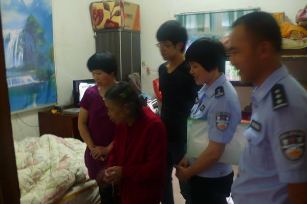 图为晋江市公安局出入境管理大队教导员张莹玲一行正在困难户王某家中进行走访慰问(福建省泉州市 颜建全 )