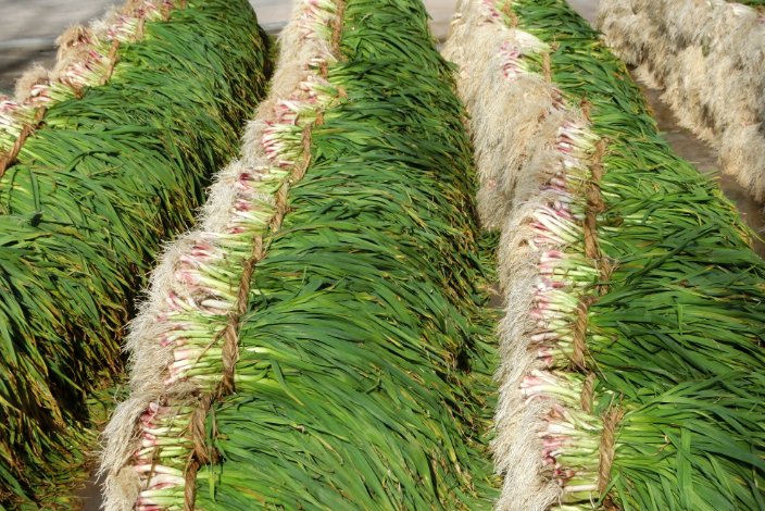 图为洗净的大蒜正在晒干水份后等待上车