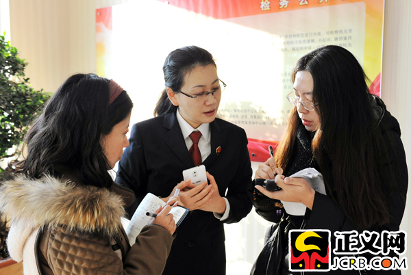 正义网长春12月30日电(记者 秦洪祥 通信员 刘世和 张依涵)为主动接受社会监督、加强检务公开工作,近日(12月20日),吉林省长春市检察院组织了由检察日报、吉林日报等十余家媒体参加的“媒体开放日”活动。图为在该院阳光检务大厅,媒体记者向工作人员详细了解案件信息公开系统的情况。