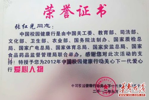 据不完全统计,自2003年来,张红光对社会的爱心奉献达到百万之巨。