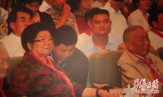张红光陪同原全国人大常委会副委员长顾秀莲及老红军杨志海一起观看文艺汇演。
