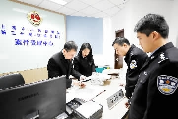 1月7日,全国首家跨行政区划检察院——上海市检察院第三分院依法受理了上海海关缉私局移送的3起刑事案件,这是该院2014年底成立以来受理的首批审查批捕、审查起诉的刑事案件。 正义网记者林中明 通讯员熊君华摄