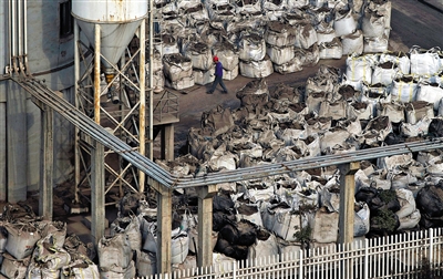 1月9日,在武汉博瑞公司汉阳锅顶山垃圾焚烧厂内,燃烧后大量的飞灰堆满了厂内一些道路。