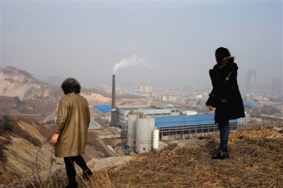 1月9日,周边居民登上锅顶山,查看垃圾焚烧厂情况,并拍摄取证。