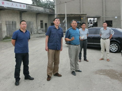 图为张进(左一)、张雪君(左二)、李瑞(中)陈刚(右一)等到明珠建村总厂现场察看