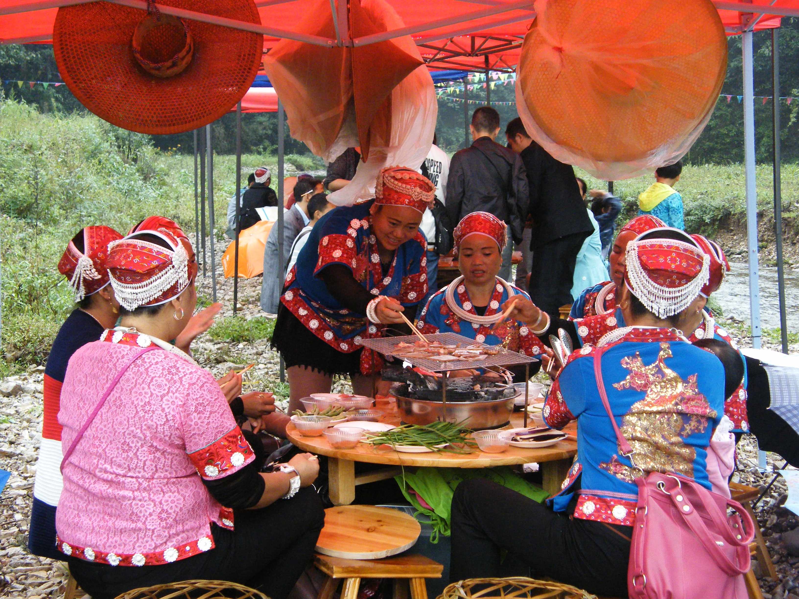 前来参加丰岩沙滩烧烤的苗族妇女们