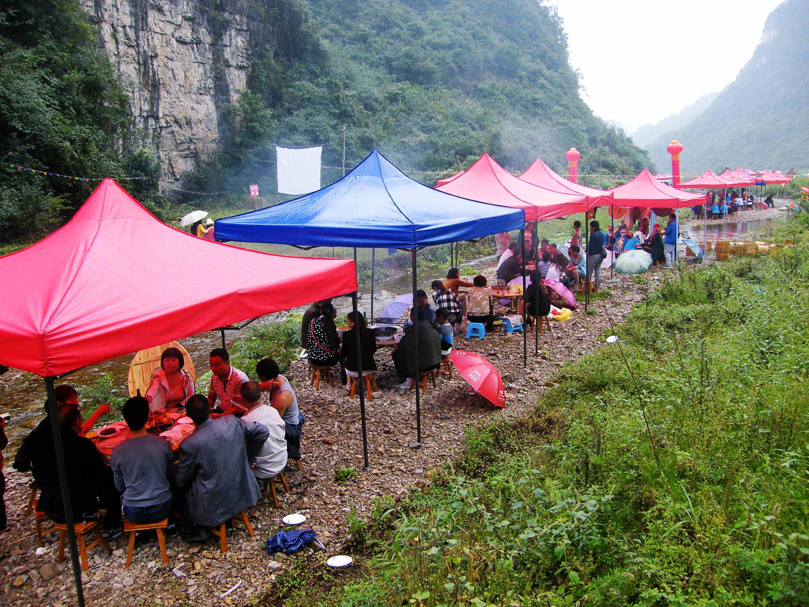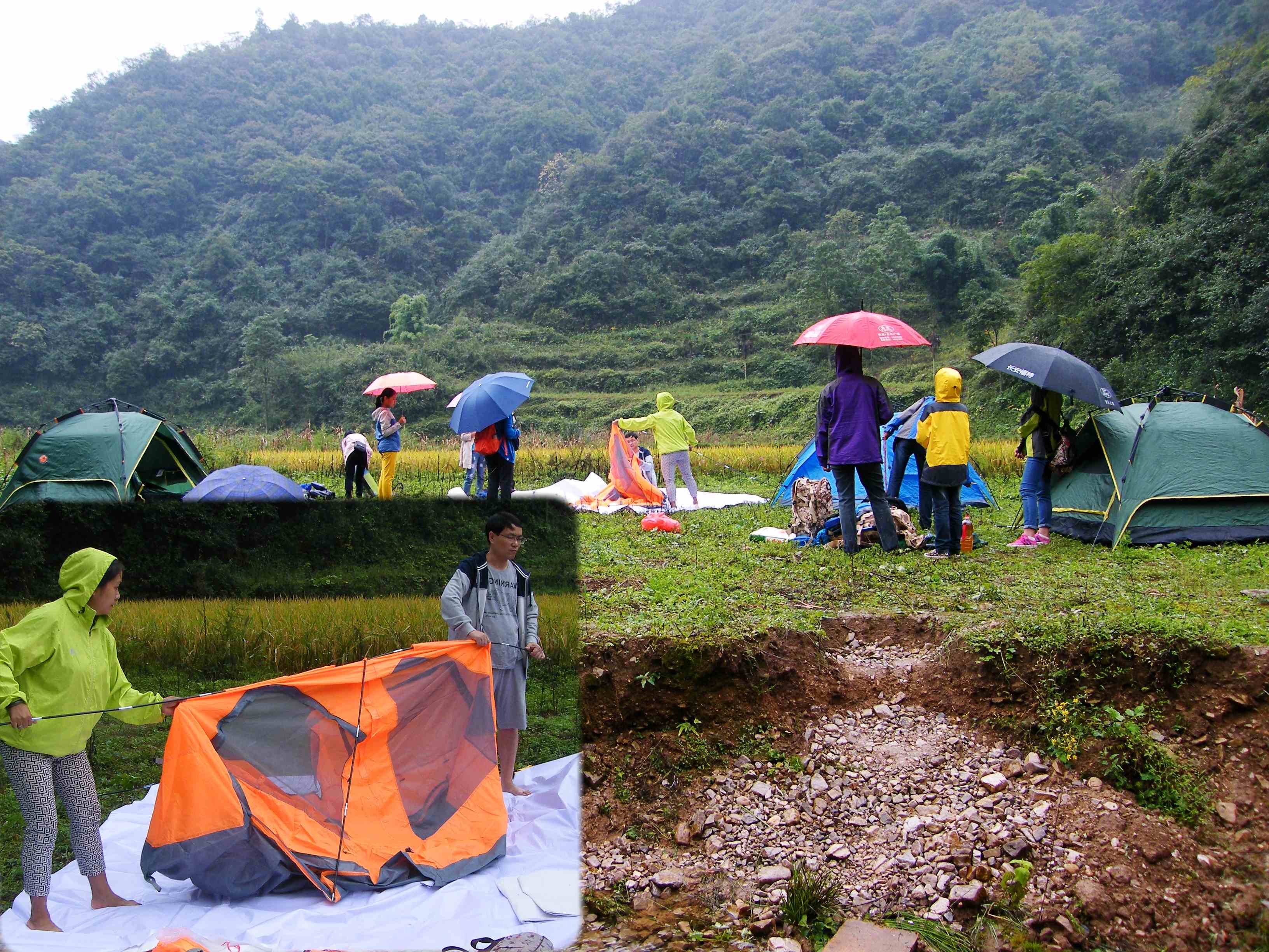 图为冒雨从外地前来观光和露营的人们