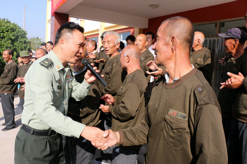 二炮著名军旅歌唱家金波演唱时与老人一一握手