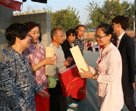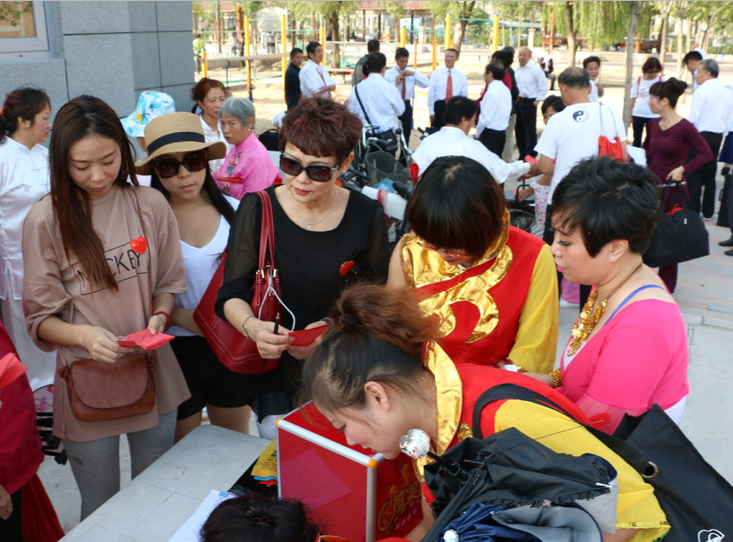 中华爱心联盟总经理刘英女士给社区居民发放礼品