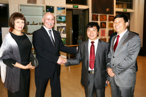 白俄罗斯特命全权驻华大使维克多·布里亚携夫人;俄罗斯驻华大使夫人Denisova;哈萨克斯坦驻华大使努雷舍夫;阿塞拜疆驻华大使拉季夫·甘基洛夫携夫人;白俄罗斯共和国文化联盟主席菠罗克·波佐夫携夫人;白俄罗斯文化联盟副主席伊戈尔·巴巴克;中国美术家协会会员、中国书法家协会员、世界华人艺术家联合会主席、著名书画家吴进良;文化联盟中国首席代表刘瀚锴;白俄罗斯国家旅游发展总公司中国首席代表国沙以及多个国家驻华机构的负责人应邀出席。