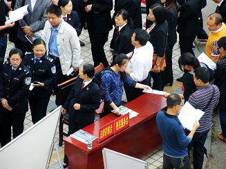 图为机关党员干部在预防职务犯罪展板前参观并接受教育