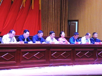 图为中共黄平县委副书记吴绍东(左三)在警示教育会上作启动讲话