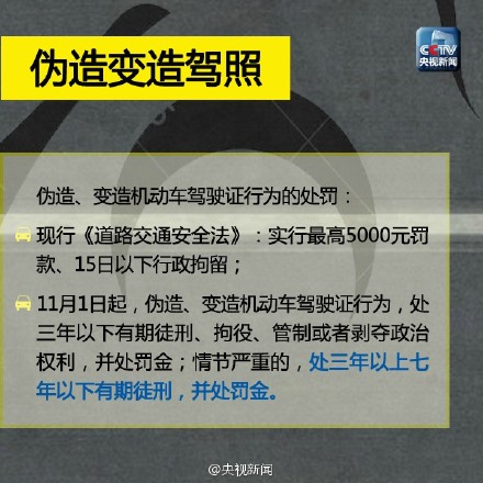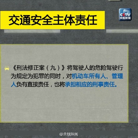 备份栏目人民网北京10月27日电 据公安部交通管理局微博消息,11月1日,新通过的《刑法修正案(九)》(简称“刑九”)将正式实施,又有一批严重交通违法行为将和醉酒驾车一样被追究刑事责任。