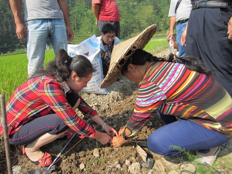 为了让村民们在各自几亩薄地上发“土财”,吴忠萍再一次组织村组干、党员和村民代表一起讨论村里的经济发展大计。有的想从太子参种植上去挖掘致富捷径,但又回眸这几年种植太子参市场风险很大,加之现在种植的太子参田间病害发生频繁,严重影响产量,有的人家因此还负债累累。大家你一言我一语地讨论怎样才能有一种投入少、管理方便、经济价值高、采收多年的作物呢?会后,吴忠萍一直在思考着这个困惑的问题。一个偶然的机会,她在网上发现有种叫作芦笋的蔬菜,又名石刁柏,只要是土质疏松,透气性好,气温在-5℃—35℃之间的土地均可种植,这类蔬菜非常适合浪洞镇一带的地理环境生长。于是吴忠萍在借助村两委组织村组干、党员和村民代表到村委会召开安全生产和春耕生产工作会的机会,就把种植芦笋的想法宣传给大家。为了打消群众对销售的担忧,她还提出与大家签订回收合同,而且第一年种植的费用(种子和肥料等,折合现金8仟多元)全部由自己承担,农户只要出劳力和土地就可以实施。当下就有张强、印右军等10户决定分别以一亩来试种。第二天,吴忠萍就在互联网上与中国农科院联系,引进美国杂交芦笋品种——绿龙来试种。但汇出去的0.6万元购回的种子只有452克,分发到10户农户手里还不到一两,连一次性杯子都装不满。种子分发到群众手上后,由于技术要求比较高,有的农户由于怕麻烦,在播种了一半就把余下的种子丢弃了。为了让更多的老百姓了解芦笋的栽培方法,2013年6月,吴忠萍还在村里举办了一次芦笋移栽现场培训会,并用自己的决心和传授的技术给村民“打气”和“充电”,使村民在进一步掌握种植技术上,对种植芦笋更加信心满满。2014年的阳春三月,在百花齐放的季节里,后寨村的芦笋也开始到了采收阶段。村民印佑军看到胖嘟嘟的芦笋高兴的合不拢嘴,他除了养鱼外,还决心扩大芦笋种植,于是又整合并流转落实了10亩的土地面积。