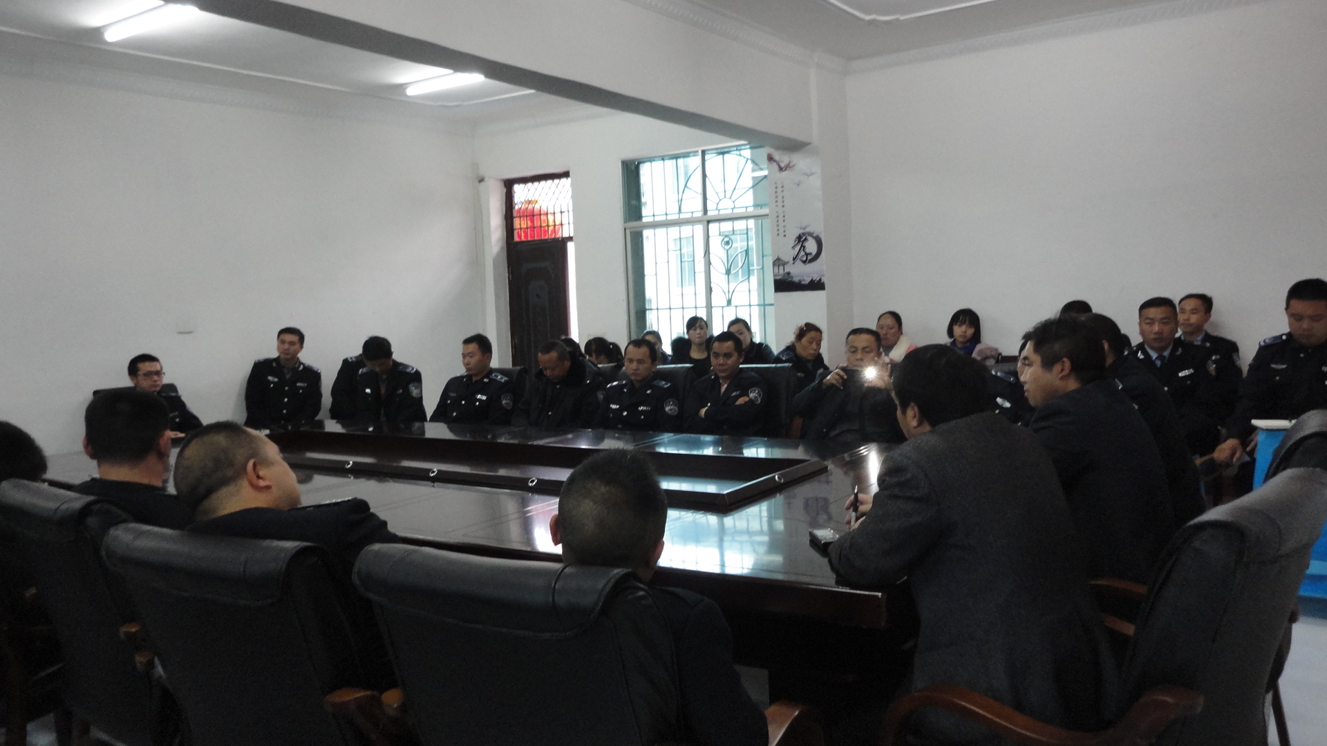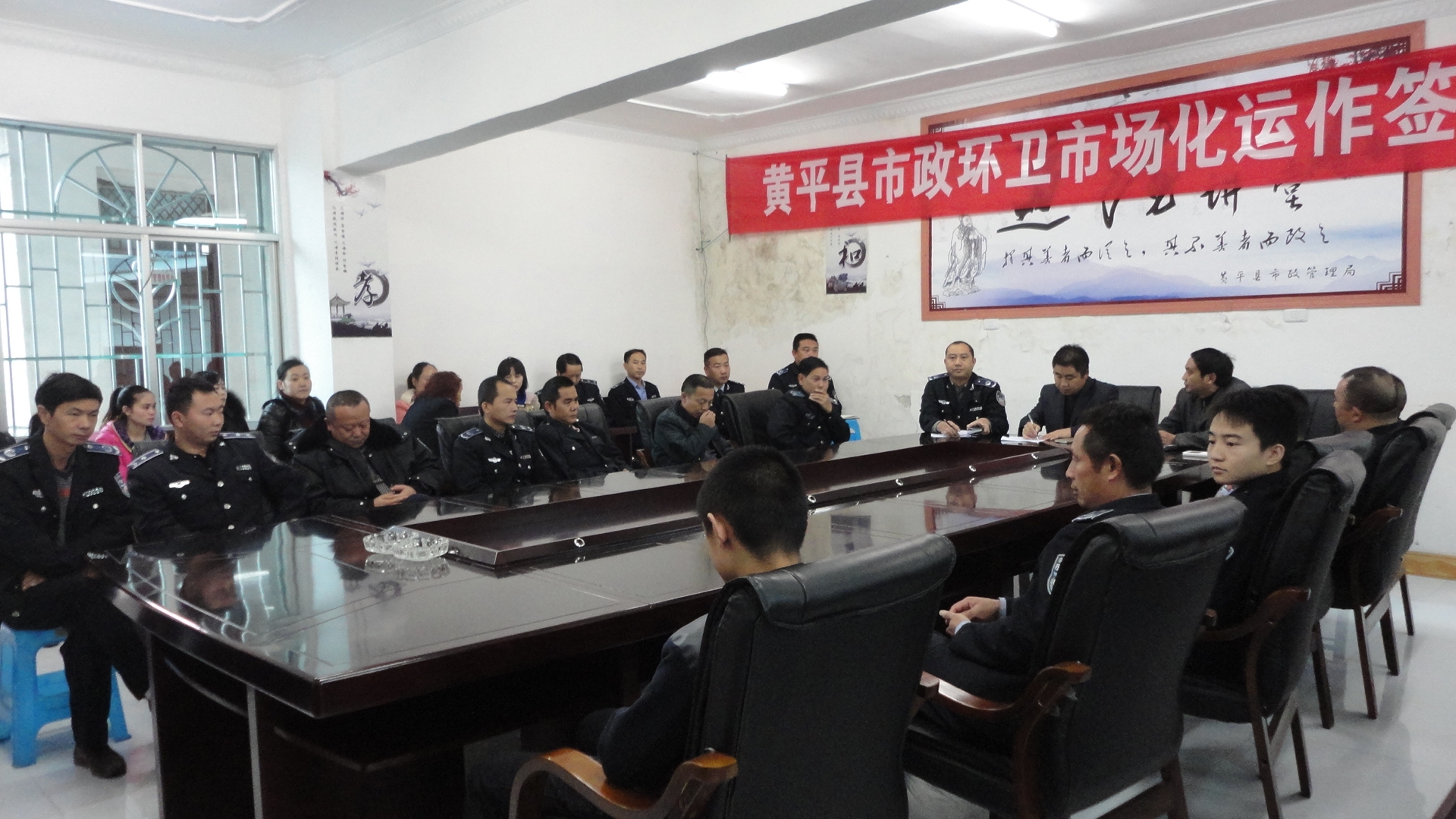 图为黄平县市政执法大队在研究“管干分离”的新问题JPG
