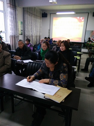 会上,首先由社区书记李明远传达了《关于认真组织做好远程教育集中培训基层“三支队伍”工作的通知》精神,她要求:全体干部要做好学习记录、编写心得体会,全体工作人员按课程表按时参加培训,确保培训效益最大化,做到全员参学、不漏一人;之后,观看了远程教育集中培训基层“三支队伍”系列专题辅导开班式、学习张春贤书记在自治区爱国宗教人士座谈会上的讲话;最后,全体工作人员对观看的视频内容进行了讨论,大家都纷纷发表意见,说这次培训安排相关部门专家进行授课,针对性较强,学习内容与实际结合紧密,通过学习可以进一步提高自己反对分裂、抵御渗透、“去极端化”、维护稳定和做好群众工作的能力素质,课程设置的较好,培训时间选的也好,自己一定认真学习,深刻领会,为今后开展好各项工作打好基础。
