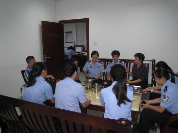 图为安溪县公安局出入境管理大队大队长黄月娥正在对主题教育活动的深入开展提出要求