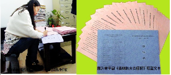森防责任状分为 “蓝状”和“红状”,其中“蓝状”成员单位。责任状要求:各包村单位要密切配合,认真执行森林防火责任区制度,切实履行职责,共同做好森林防火工作;按照责任区的划分,搞好对所帮扶村森林防火工作的指导、检查、督促工作,在森林防火紧要期(2015年11月1日-2016年4月30日),各包村单位每周至少到责任区指导、检查、督促工作一次,帮助解决在森林防火工作中遇到的困难和问题;及时通报防火工作情况,对所联系村存在的问题及时向县森林防火指挥部通报。