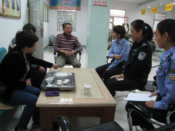 图为安溪县公安局出入境管理大队教导员林双一行正在先声居委会开展业务咨询服务活动