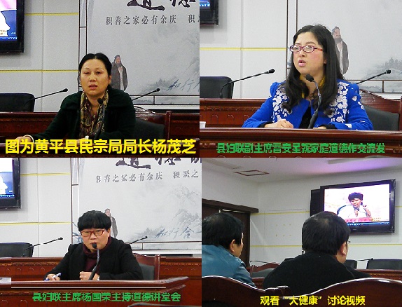 会议由县妇联主席杨国荣主持。会上,县民族宗教事务局局长杨茂芝就民族宗教政策与法律知识进行了宣讲,并阐述了我国民族历史和现状、本县创建各级民族团结进步示范单位的情况等;县妇联副主席雷安星就自身家庭亲子和道德教育进行了交流发言。在结合当前开展“大健康”教育活动中,全体参会人员还集中观看了大健康知识讲座。通过3个多小时的道德宣讲和视频教育,使全体党员干部不仅感受了中华民族传统伦理道德的真谛,同时也领会了“大健康”在全民开展的重要性。