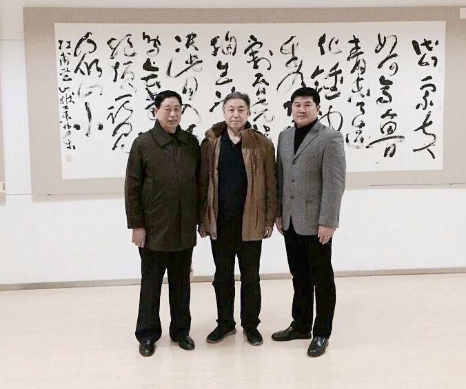 薛伟东(中)与中国泰山书画院院长薛文明(右)合影。