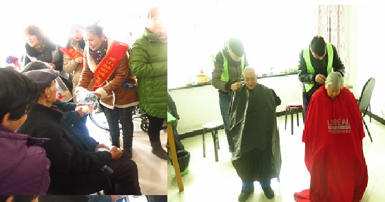 3、“尚极理发店”义务理发志愿服务队走进养老院,为行动不便的老年人免费理发,受到了老年人的热烈欢迎。活动过程中,志愿者们热情为老人们服务,打院内的雪,免费理发、陪老人聊天,还为老人送去了衣物,气氛活跃。志愿者们温暖了老人,也快乐了自己。