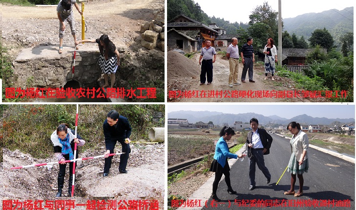 2010年至2014年是黄平县农村交通发展最快的4年。在这几年里,全县近200多公里的通村水泥路或通村油路建设项目均落在以杨红同志为核心的技术骨干身上。她自从担任业务副局长后,自己并没有因职务的升迁而坐在办公室靠电话指挥或遥控,每个工程的预算和造价,她都要亲自动手和过问,每个公路工程涉及到的砂石、水泥、钢筋等的采购和用料,她都严格对承建商监督和审查,使一些企图以投机取巧和偷工减料来骗取国家资金的工头无空子可钻。如某公路承建商在修建重安镇新合公路时,通过以不达标的水泥和渗入不合格的砂石料来套取国家农村公路建设资金,欲从1.5公里路段里谋利。杨红发现后,要求承建商立即翻工整改。谁知对方不但没有虚心接受,还给杨红打了20余个“悄悄电话”和托人说情等手段,希望杨红等人在验收上网开一面。面对老百姓千期万盼来之不易的惠民工程,杨红决不能让这种“豆腐渣”工程成为农村的“短命路”。她不但没有给这公路承建商和说情熟人的面子,而且还邀请纪委以及交通局的领导和专家一起到达“竣工现场”,并用回弹检测仪逐路进行了检验。从检测的结果,该公路百分之七十都需要翻工。这次验收和整改,不仅为国家节约了近20万元的投资,还给新合村避免了一条“豆腐渣”公路。据统计,在杨红上任后的3年时间里,她以严格的验收态度和一丝不苟的认真精神,共为国家节约开支达110余万元。到2014年,全县农村机动车辆已发展到1600多台,货物运输量达260万吨,客运发送量达570多万人次,使黄平县的山区公路已成为农村全面建成小康社会的康庄大道。