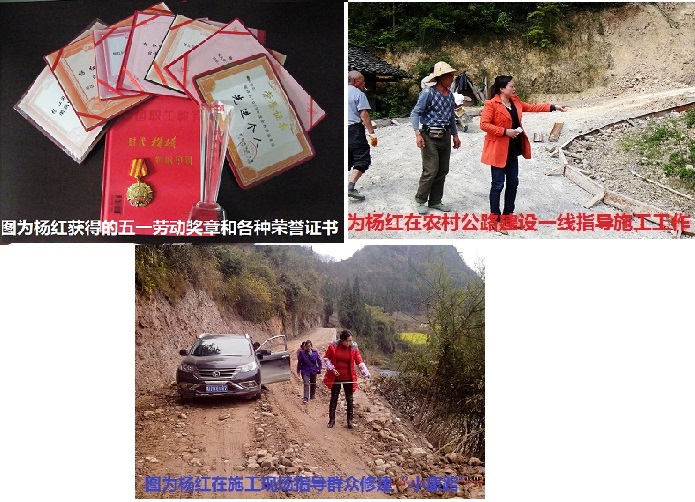 杨红自踏入交通战线的10个春秋以来,一双又一双自备的“工作鞋”在她的脚下被磨得面目全非,足迹遍及了全县600多个村寨的山山水水,一手规划和参与修造的公路里程就达1100多公里。一条条缩短了城乡差别的致富路上,都凝聚着杨红同志的心血和汗水。俗话说:金杯银杯,不如百姓的口碑。百姓的口碑之下和她所付出的辛勤劳动,也得到了各级政府和业务部门的高度赞赏。2009年至2011年,她连续三年被评为黔东南州交通系统先进个人;2013年荣获“贵州省十大最美‘交通人’”和 “贵人善行—百名最美贵州人”称号。更令人欣慰的是,在2015年五一劳动节里,她还被省委、省政府表彰为全省劳动模范。