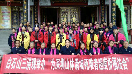 中国周易新闻网讯:2015年12月27日,全国道教名山圣地、全国道教三十六洞天之第二十一洞天---白石洞天!广西桂平市白石山三清观为“深圳山体滑坡死难者”举行超度祈福法会。法会由广西道教协会副会长、贵港市道教协会会长、桂平市道教协会会长、白石山三清观住持---陈应伟道长主持。全体道众及十方善信焚香拜表,叩请天地神圣众真,祈祷深圳山体滑坡灾区生者平安,亡者超升,祈愿祖师垂怜,灾障不再。