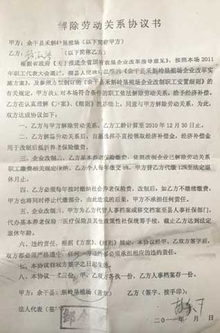 彭乐平与垦殖场签订协议