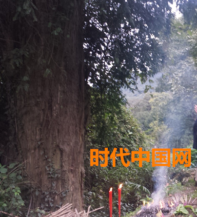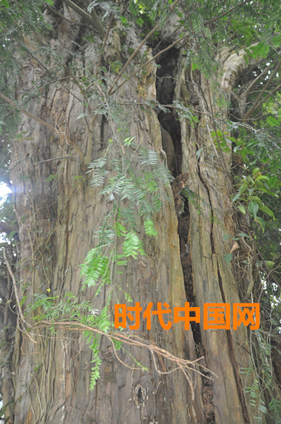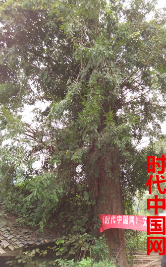 时代中国网贵州消息周再连摄影报道: 时值2016元旦之际,时代中国网文化公益进基层活动走进贵州, 在贵阳市同中国红豆杉协会常务秘书长周秋连,会同贵州玉福临科技开发有限公司法人王永菊、中国红豆杉研究院副院长曾发忠等一行人驱车赶往贵州思南县大坝场镇青杠园村,对一棵上千年的野生南方红豆杉古树进行了考察,这棵红豆杉树位于思南县大坝场镇青杠园小学对面,大坝场镇青杠园村村民委员会的右侧,我们一路走去就是在村民委员会地址右侧有一座年久未修的古庙,庙宇有点破烂不堪的样子,翻到庙宇后面就是我们所要考察的古红豆杉树,只见此树约有40米高,因生长的地理位置不同,我们三人也无法拥抱到,古树确实有些年头了,从地面算起约有2米多高时,树有出现了裂缝约有30-50厘米啊,可到了6米多高时树枝才开杈,此树根叶茂盛,树上还结有红豆杉果实呢,为了更准确的了解,我们找到了村长家里,有在村长家里借来了钢卷尺,后来我们一量只见离地2米左右就是3点8米的胸围啊,可4米高处胸围不会低于4点2米呢,我们的通过多方了解,此树能存活上千年,一是当地土质、气候湿度有关,再就是树下庙宇也有一定的辅助作用,再加上当地人们爱心雄厚,至使这树能长到今日。