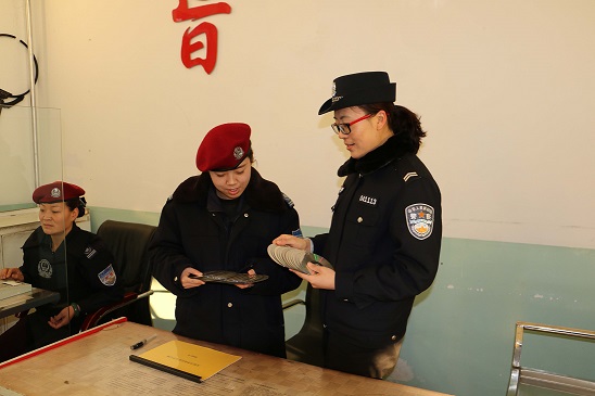 包头铁路公安处巴彦高勒车站派出所民警对查获淫秽光盘进行清点登记