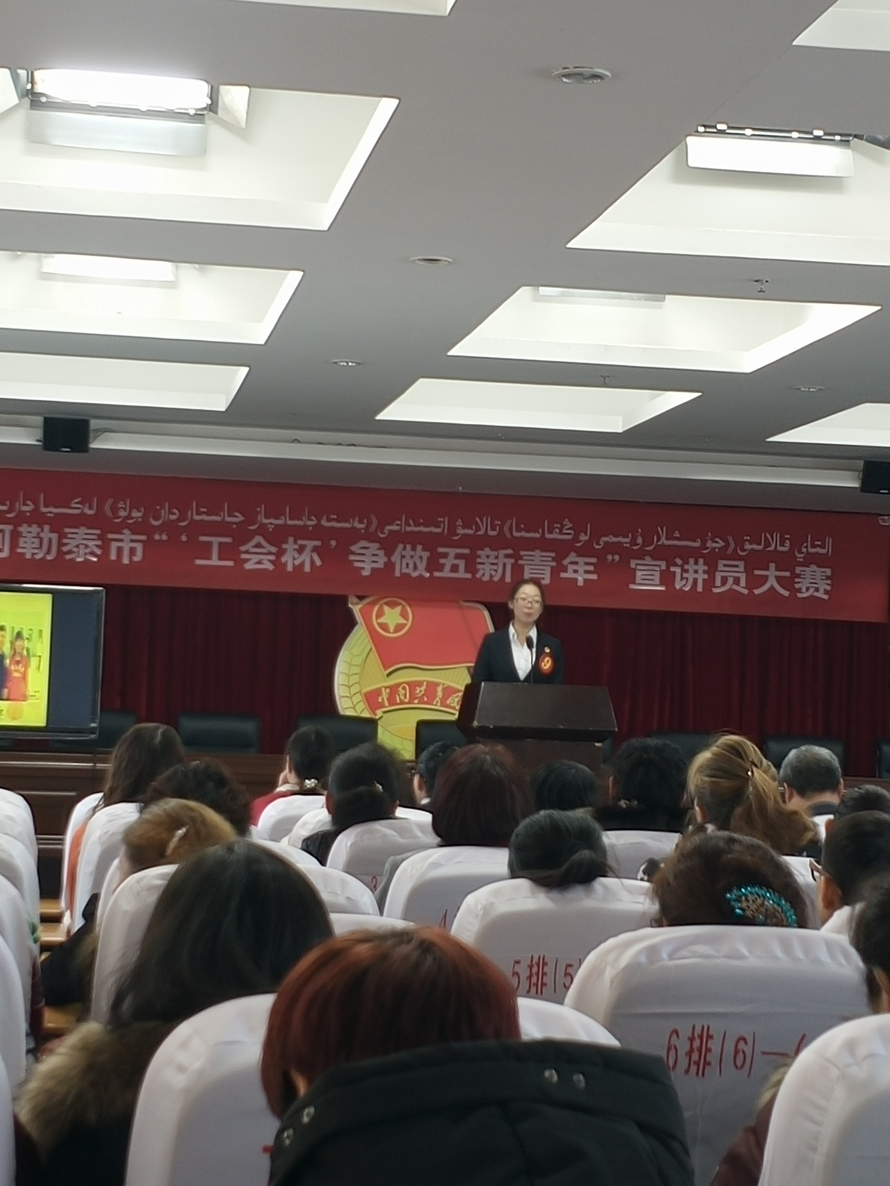 清风网讯;(通讯员 祝红红)为进一步展现当代青年精神风貌,突出现代文化引领,积极引领阿勒泰市各族团员青年争做“五新”青年。3月4日,阿勒泰市团委在市政府会议大厅举行“工会杯”“争做五新青年”共青团宣讲员大赛,