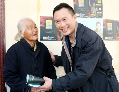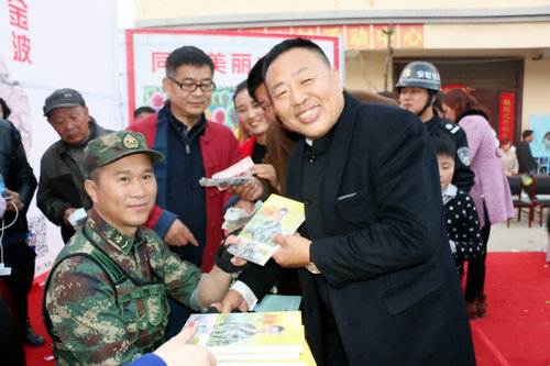 慈善家孙佑刚主动购买金波励志书籍《出征》送给村民,金波将善款全部捐献于村里