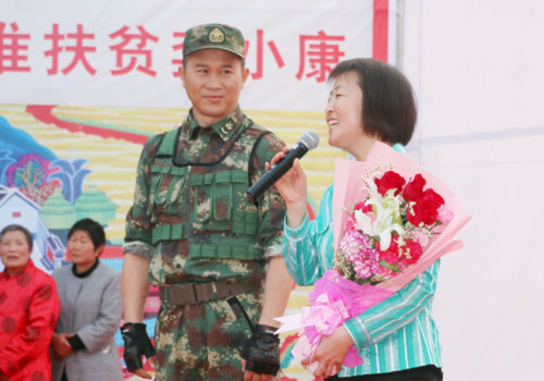 金波把观众送给他的鲜花赠送给村第一书记宋瑞