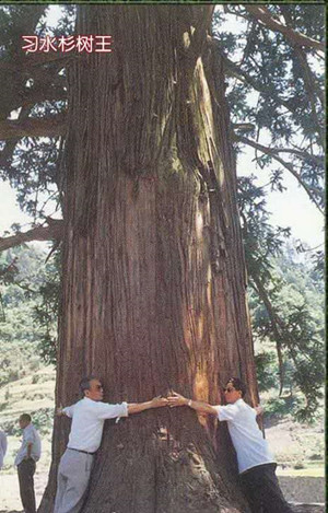 时代中国网贵州消息周周秋莲报道: 时代中国网文化公益进基层走进贵州习水时。听当地人介绍,我们首先游览了习水市杉王公园。一棵距今八百多年历史的杉树粗壮挺立,号称“中国杉王”。据碑文介绍:中国杉王,相传宋绍定六年春,袁世盟军奉诏平播于此,为平息民族割地之争,一神箭落地为界,倒插一树苗,历经八百年雪雨风霜,沧海桑田,山河巨变,然此树却拔地擎天,根深叶茂,郁郁葱葱,乃神树也。世代乡民焚香秉烛朝拜,以求杉王佐佑长治久安,永远太平,早成习俗。该杉王树高44.8米,胸径2.23米,冠幅22.7米,主干材积84立方米。需七八个成年人牵手合抱才能将其围住,树型挺拔尖耸,犹如参天巨伞屹立在山峦之中。 经专家认证,实为旷世奇珍,公秋华夏之最,冠以“中国杉王”美称,闻名遐迩。我们个个无不被这杉王雄姿所折服,纷纷留影纪念。