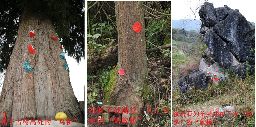 鼠桥:在高大雄奇的岩石前,修建一座石质或木质的小桥,供野鼠行走,使“鼠神”庇荫出生的子女有吃有穿。安架这类“鼠桥”的多为长期贫困的家庭,他们没有过多的需求,只盼望子女一日三餐有保障就行。