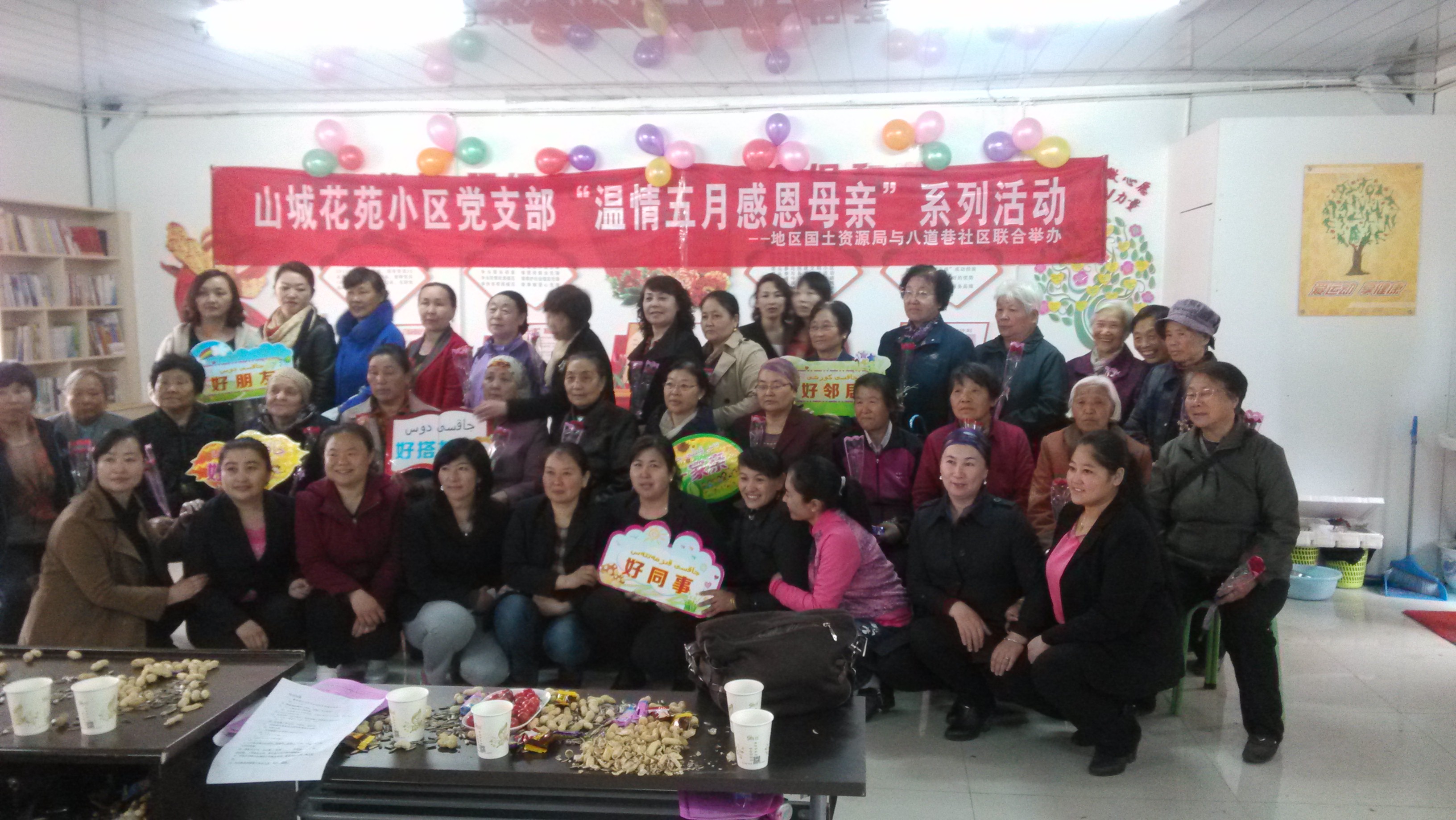 清风网讯:(通讯员 潘美玲) 5月6日,母亲节前夕春雨潇潇,情丝缭绕。八道巷社区及社保局驻八道巷社区工作组与地区国土资源局联合举办了---山城花苑小区党支部“温情五月感恩母亲”系列活动。被邀请到的有社区居民母亲30余位。社区干部及工作组为使各位母亲度过一个美好的佳节,精心地为辛勤的母亲们准备了各种精彩的节目,感情丰富的诗歌朗诵、优美的舞蹈、动人的歌曲等。使在场的各位母亲喜笑颜开、感人泪下,特别在亲子互动环节感动的泪水洗面。有一位孩子不能来到现场特别为母亲写了一封很感人的信并为母亲亲手编织了一个精美的挂件。让母亲感动的泣不成声。有的儿女由于工作脱不开身,特委派社区干部代替他们对母亲表达这份真挚的感情。这次活动拉近了社区干部与居民的距离。更是让各位母亲感受到了各位社区干部对居民如同儿女般的关心与支持。