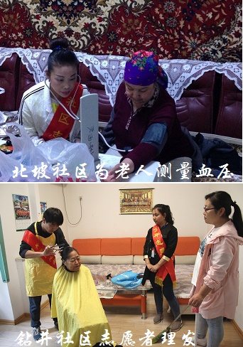来自12个社区的52名志愿者们深入到33户空巢老人和残疾人家中,有的开展家务劳动,扫地擦窗;有的攀谈交流,分享人生感悟;有的谈家乡变化,介绍社区换届流程;有的讲惠民政策,解读"民族团结进步年"27项重大举措。五亭社区的志愿者们发现82岁高龄的早尔汗老人家中下水道堵塞,专程请工人师傅上门维修;钻井社区的志愿者们得知张琴阿姨腿脚不便,准备好器材上门理发;北坡社区联合工作组开展量血压、测血糖服务;双环社区则与工作组送去了慰问品。