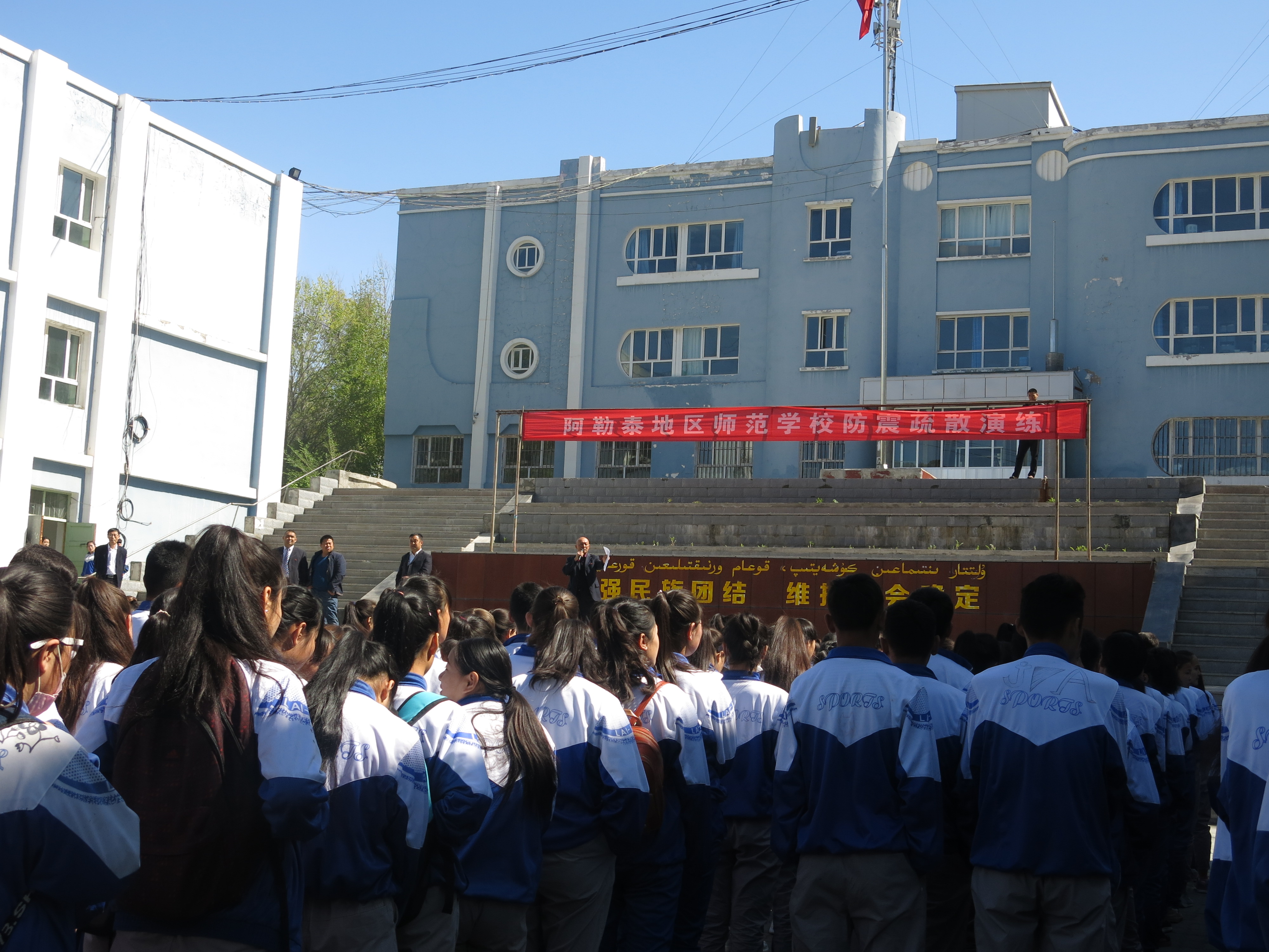 清风网讯:(通讯员 古丽江 玛依沙)为进一步加强对学生防震减灾知识的宣传教育,提高防震减灾意识和震时应急、自救互救技能,根据阿勒泰地区教育局开展地震应急疏散演练活动的要求。2016年5月11日上午12时,金山北路社区联合地区师范学校举行了地震应急疏散演练。此次演练地区师范学校相关职能部门负责人、保卫处工作人员、金山北路社区综合治理专干以及金山北路社区警务室民警共同参加了演练。