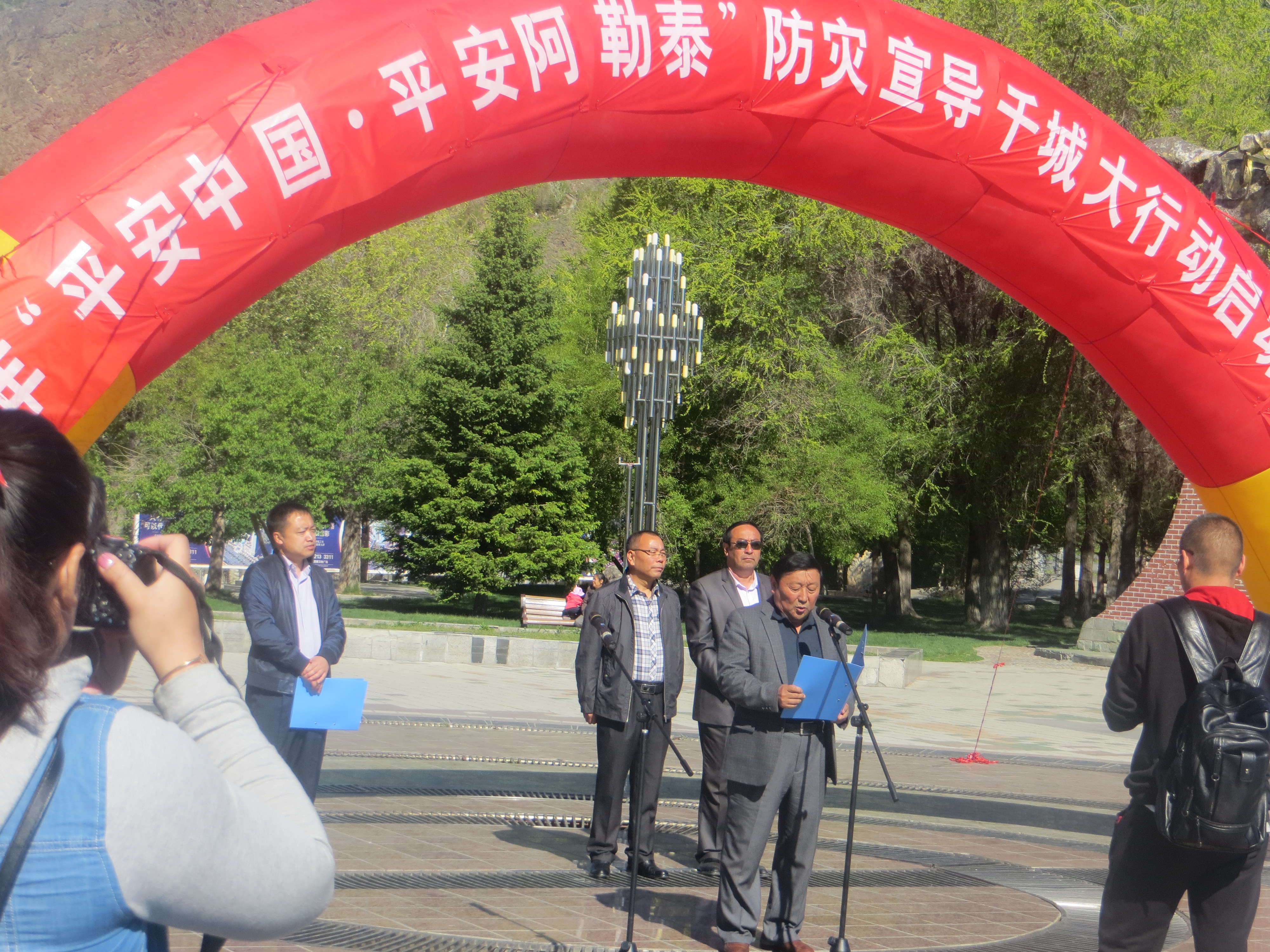 2016年 “平安中国”防灾宣导千城大行动自2月底开始至10月底在全国同步开展,阿勒泰作为活动参与城市之一,以建设“平安校园”、“平安社区”、 “平安乡村”为主题,将结合防震减灾六进活动、地震应急演练、科普讲座、广场宣传等形式,打响“今天的努力是为了明天生命的延续”口号。